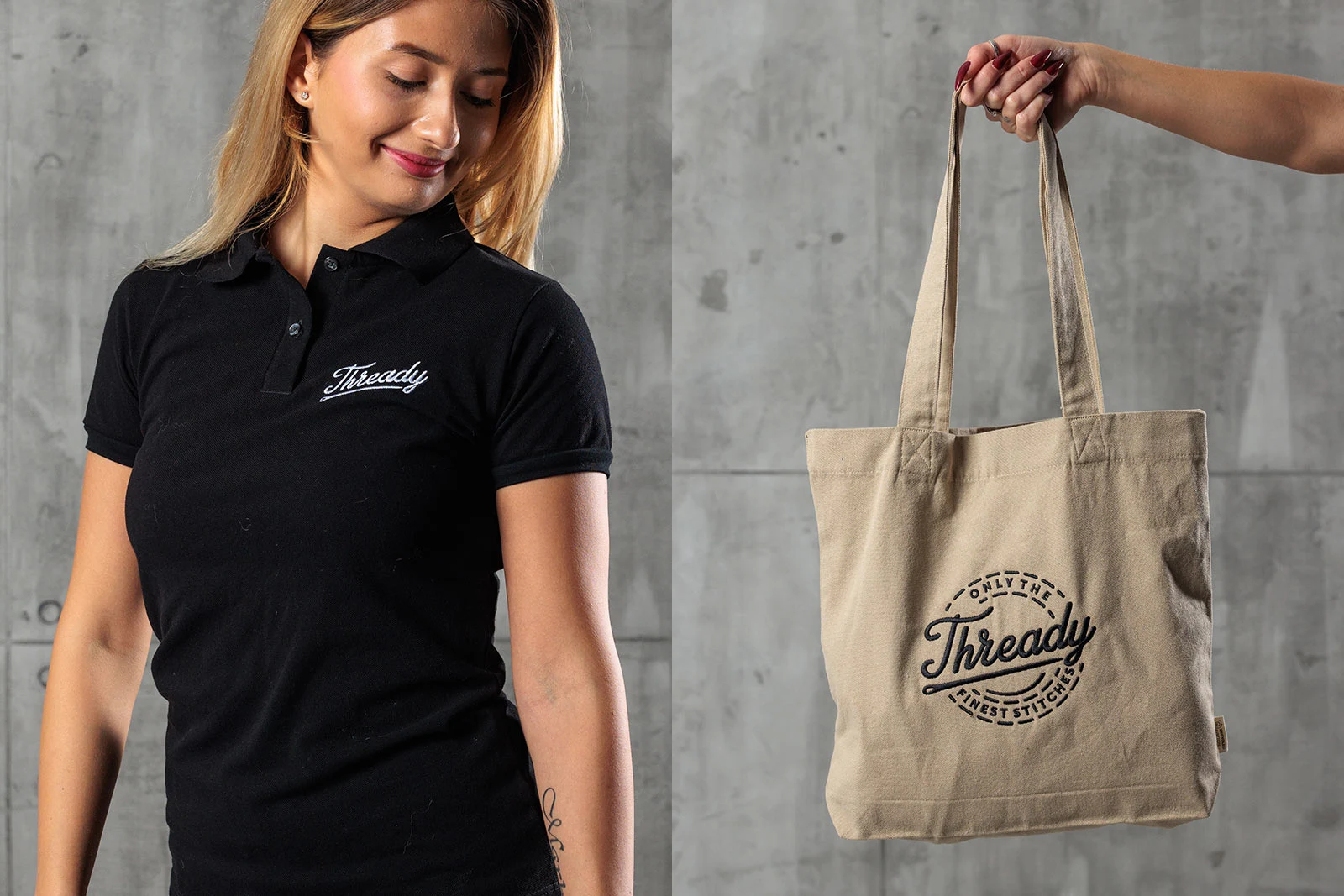 Thready je tu da Vam pomogne da stvorite profesionalnu, visokokvalitetnu brendiranu odeću koja se izdvaja. Specijalizovani smo za pretvaranje logotipa i dizajna u pažljivo izrađen vez koji prenosi suštinu vašeg brenda. Bilo da su u pitanju poslovne majice, duksevi, uniforme ili promotivni predmeti, naša usluga digitalnog veza osigurava da svaki komad odražava identitet i vrednosti vašeg brenda.